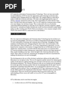 Introduction to Information and Communication Technology in Education. (Moursund) are being affected by the developments that are occurring in ICT. Thus we are led to four specific ICT in education questions: What is appropriate ICT content to include in the students curriculum? What are effective uses of ICT for helping students to learn the non-ICT and the ICT curriculum content? What are effective uses of ICT in student assessment in non-ICT areas, and what are other effective ways to assess student ICT knowledge and skills? What are effective preservice and inservice teacher education practices that lead to effective integration of ICT into curriculum content, instructional processes, assessment, and teachers overall professional learning and work? These are hard questions. Moreover, ICT continues to change at a very rapid pace. Thus, answers to the questions are changing and will continue to change in the future. This issues raised in these questions are a challenge to our PreK-12 and teacher education system. It is a major challenge to both preservice and inservice teachers. The rapid pace of change in ICT is continually outdating their ICT knowledge and skills.