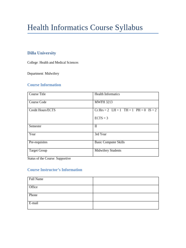 Health Informatics Course Syllabus