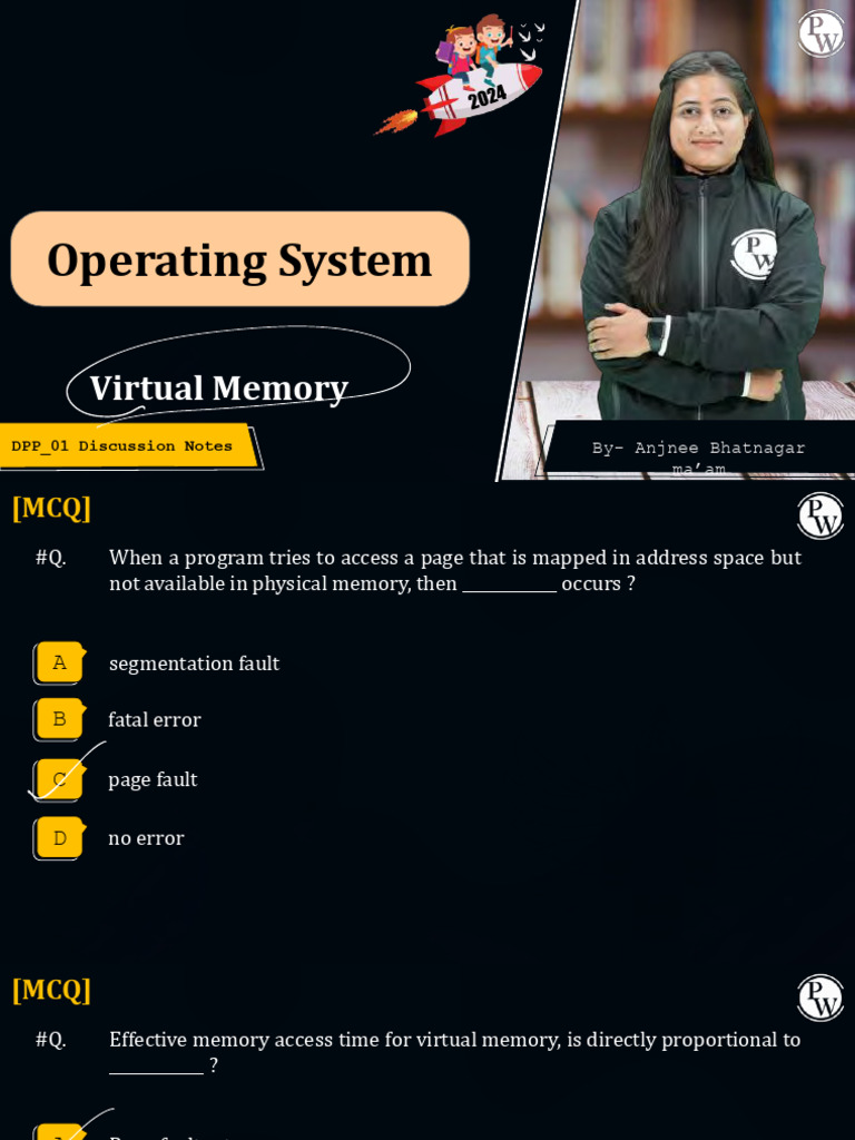 #Q. Effective memory access time for virtual memory, is directly proportional to