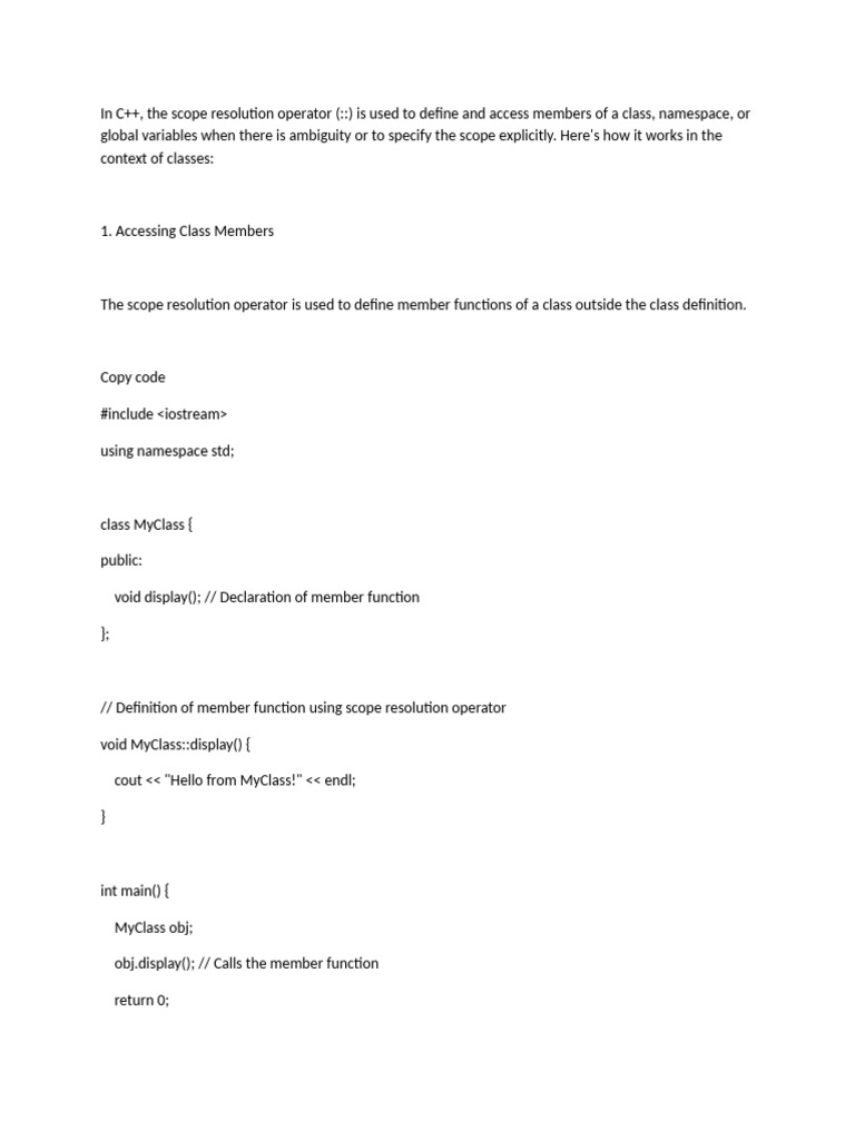This operator is a powerful tool in C++ for managing scope and ensuring clarity in code.