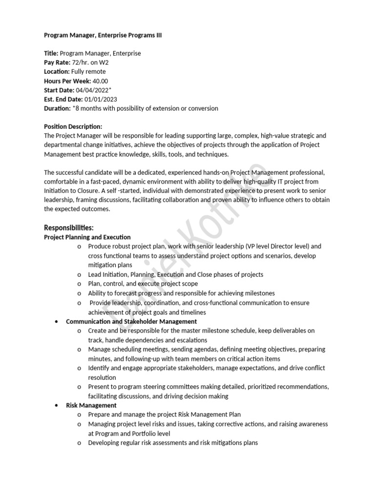 The successful candidate will be a dedicated, experienced hands-on Project Management professional,