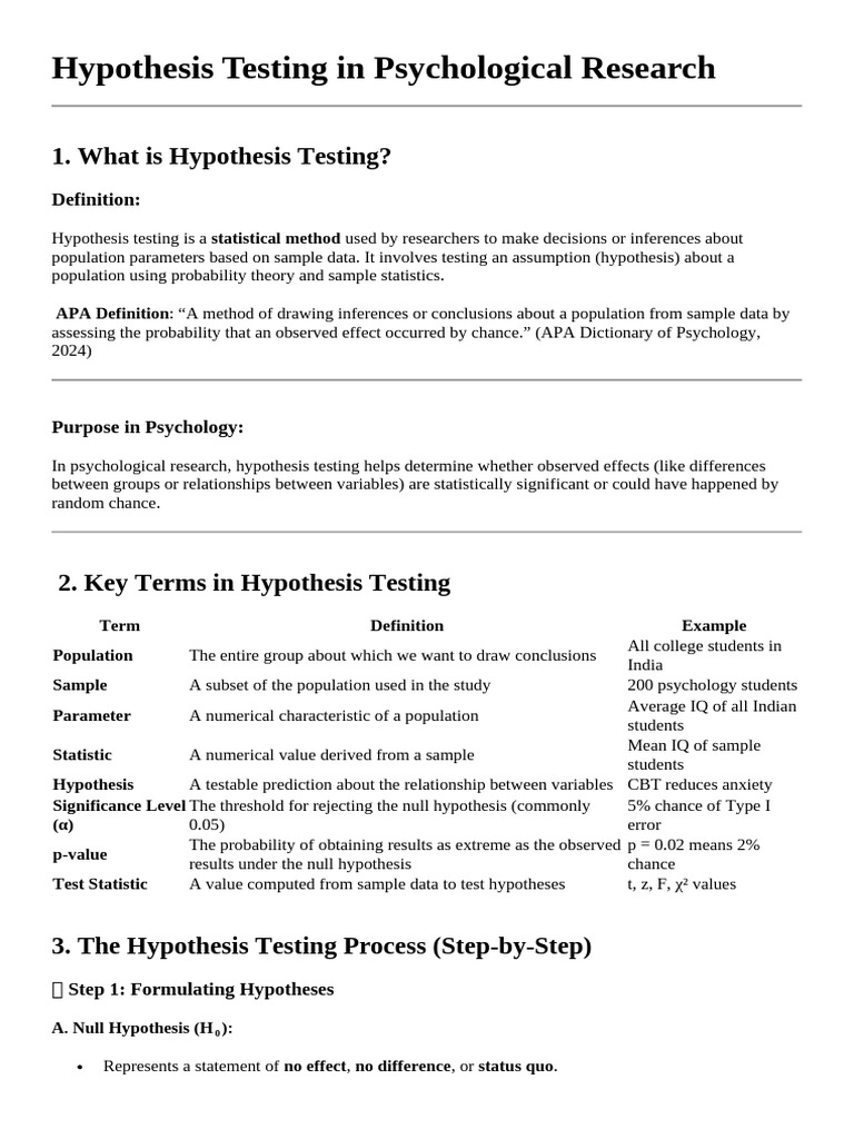 In psychological research, hypothesis testing helps determine whether observed effects (like differences