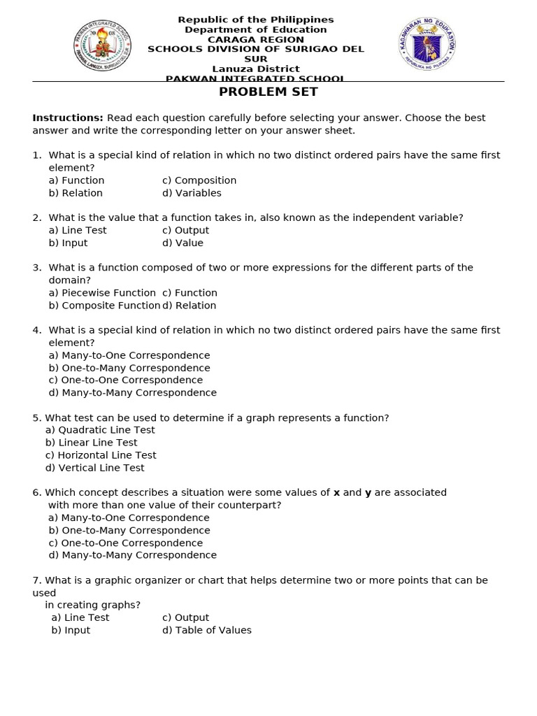 1. What is a special kind of relation in which no two distinct ordered pairs have the same first