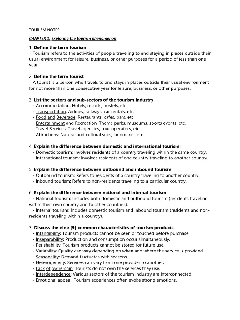 - Interdependence: Various sectors of the tourism industry are interconnected.