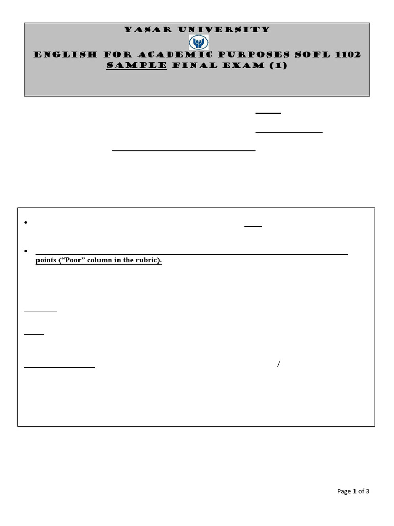 ENGLISH FOR ACADEMIC PURPOSES SoFL 1102
