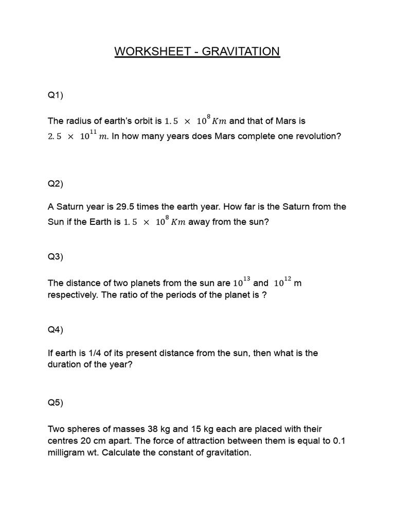 The radius of earth’s orbit is 1. 5 × 10 𝐾𝑚 and that of Mars is