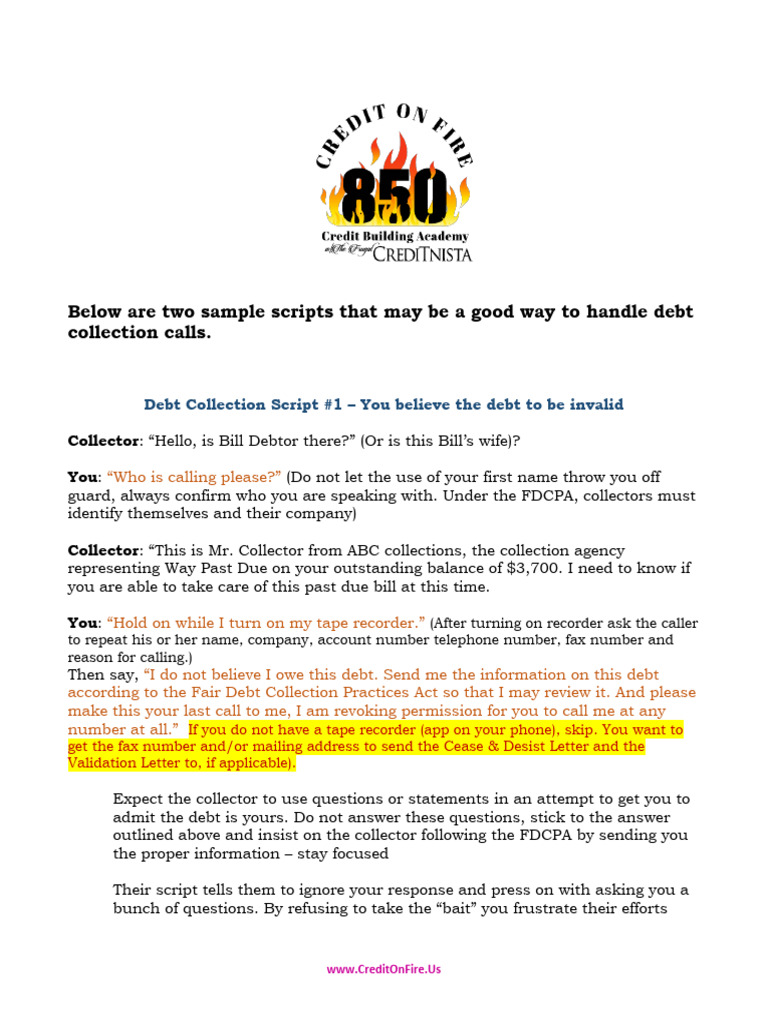 Debt Collection Script #1 – You believe the debt to be invalid