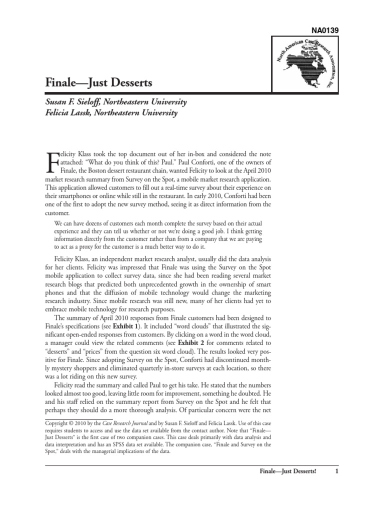 data interpretation and has an SPSS data set available. The companion case, “Finale and Survey on the