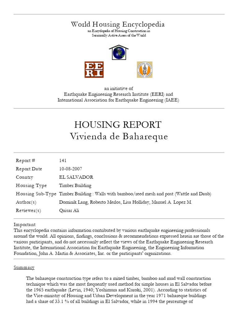 A very detailed overview of strengthening and retrofitting measures for bahareque dwellings is given by Irula et al.