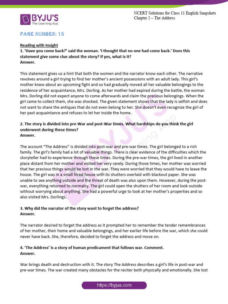 War brings death and destruction with it. The story The Address describes a girl's life in post-war and