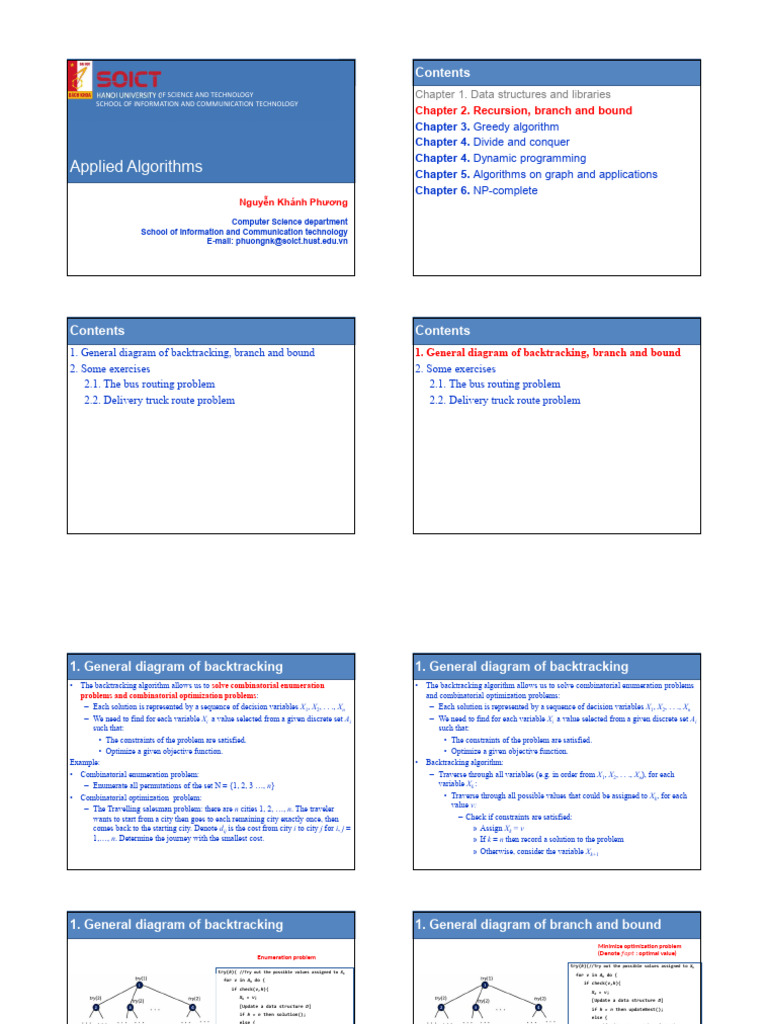 1. General diagram of backtracking, branch and bound 1. General diagram of backtracking, branch and bound