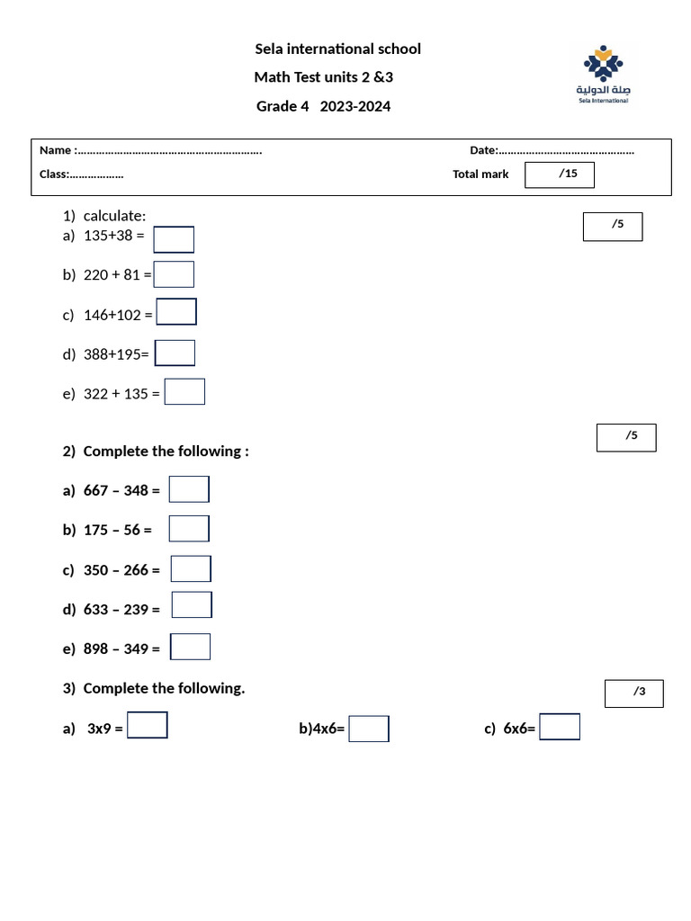 Class:……………… Total mark /15