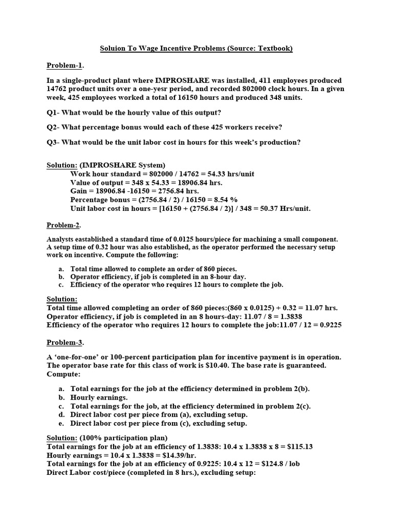 Soluion To Wage Incentive Problems (Source: Textbook)