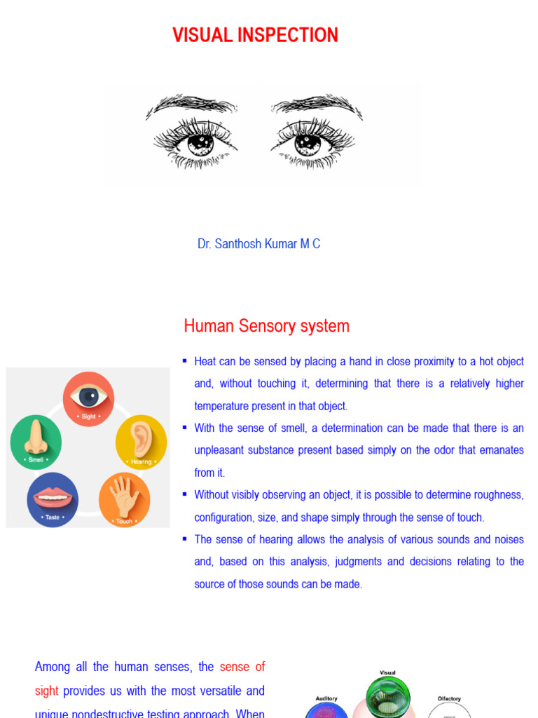 Visual Testing (VT) is widely used of all NDT techniques and it is the oldest of them. Visual testing is