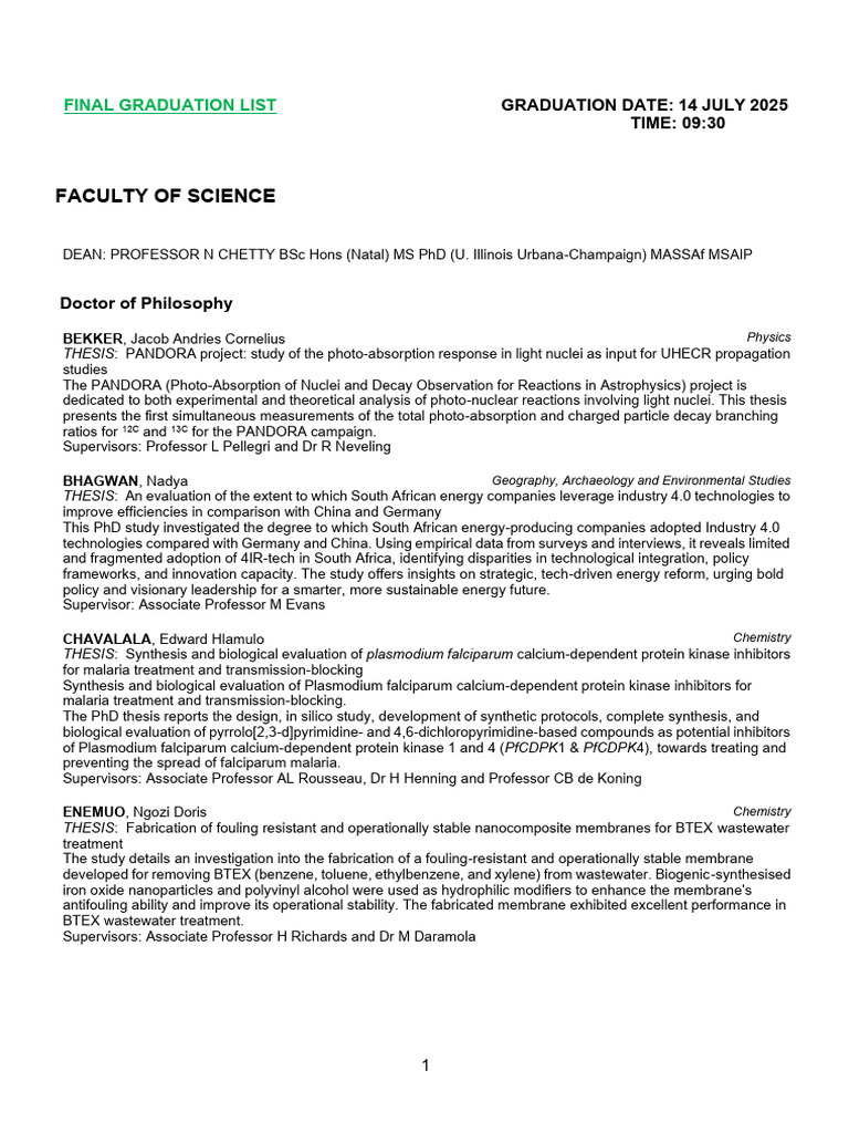 FINAL GRADUATION LIST GRADUATION DATE: 14 JULY 2025