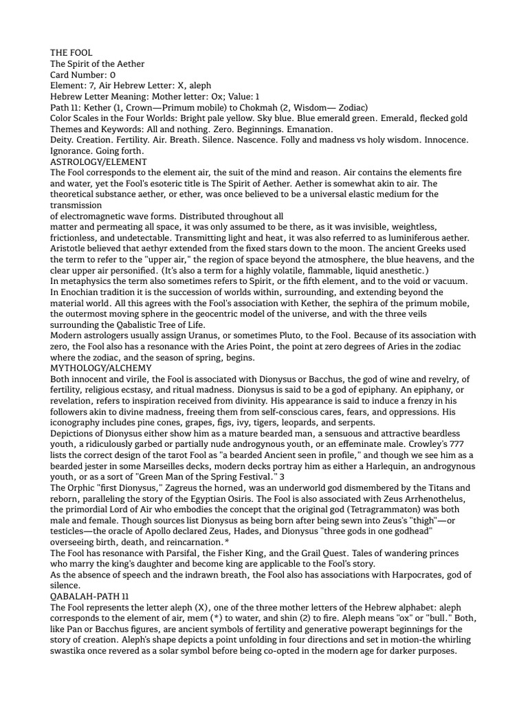 awareness. Like the planet Uranus, the Fool is chaotic, unpredictable and eager for change.