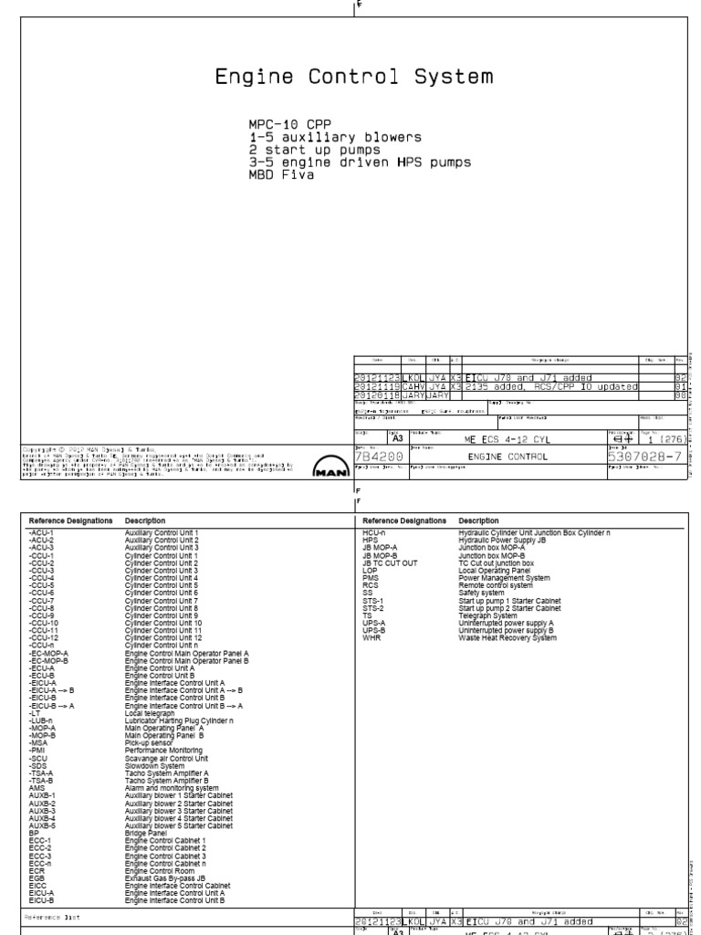65 ME ECS - Layout of Cables to/from Network A & Network B - 12 Cylinder