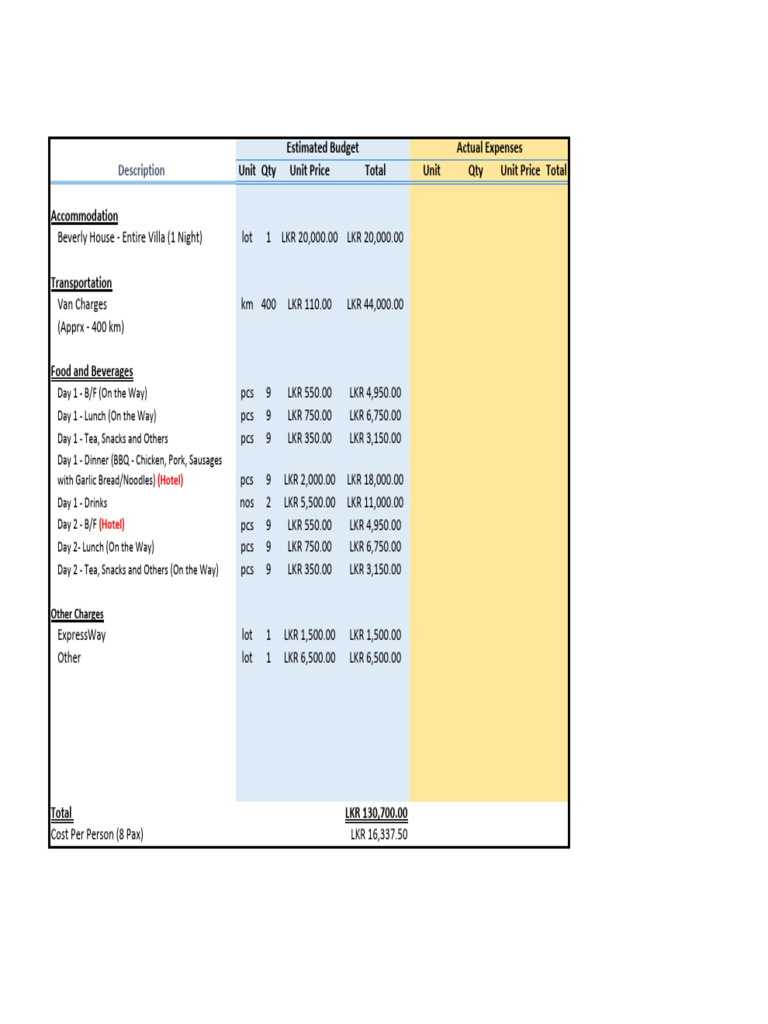 Estimated Budget Actual Expenses