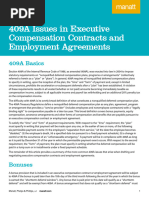 n April 10, 2007, the United States Treasury Department (Treasury) issued nal regulations (the Final Regs) under Internal Revenue Code Section 409A (Code Sec. 409A).1 Congress enacted Code Sec. 409A in October 2004 to strictly regulate the use of deferred compensation arrangements. Under Code Sec. 409A, deferred compensation includes not only employee-elective deerre c ed compensation, but also includes supplemental ferred com ex cuti re emen plan (SER xec ive executive retirement plans (SERPs), severance-related ar ngeme , rran em c in ca arrangements, and certain cash-based and equityba ed i ce ase incentive compensation arrangements. mpensation based inc nt e com h F dress d es with The Final Regs addressed many issues w respect rre compensation tax law. The major a o w h to the new deferred compensation ta law The majo issues addressed or claried were the following: various denitions, including: deferral of compensation nonqualied deferred compensation plan service provider service recipient specied employee service recipient stock change in control event; plans and arrangements that are exempt from Code Sec. 409A;
