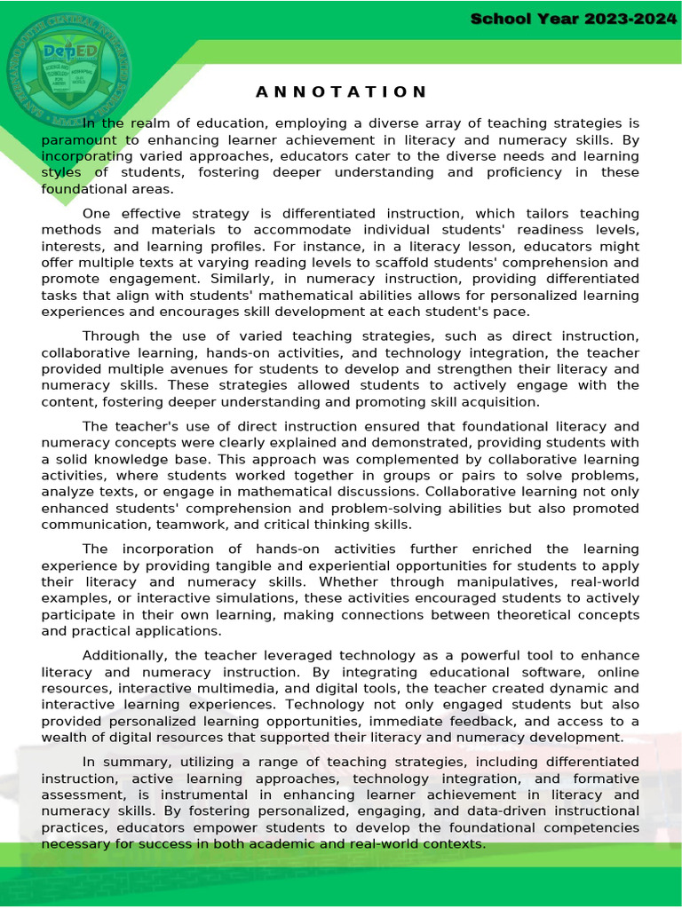 paramount to enhancing learner achievement in literacy and numeracy skills. By
