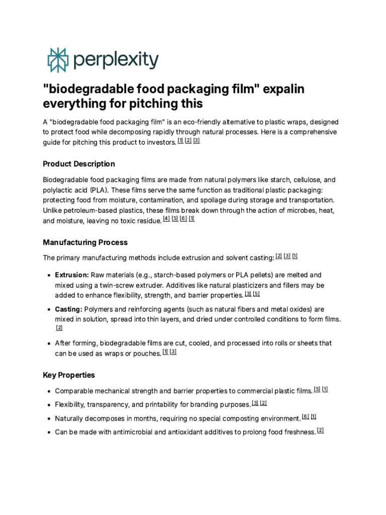 to protect food while decomposing rapidly through natural processes. Here is a comprehensive