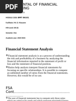 Financial statement analysis is the process of examining relationships among financial statement elements and making comparisons with