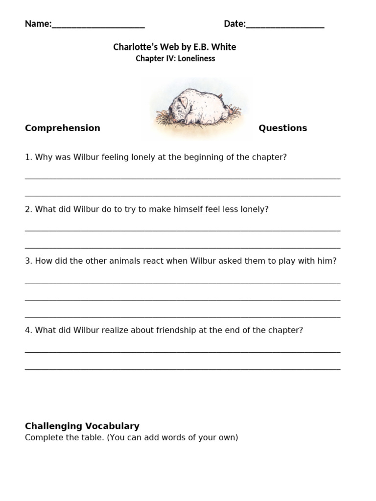 1. Why was Wilbur feeling lonely at the beginning of the chapter?