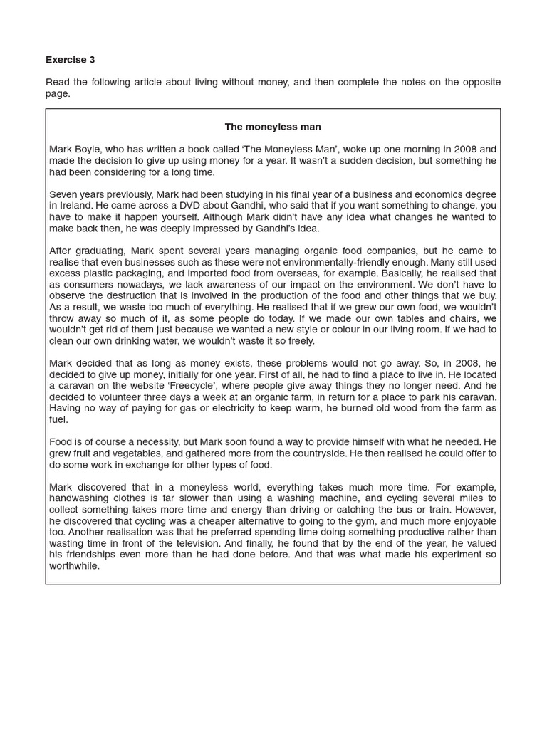 You are going to give a talk to your class about Mark Boyle, the moneyless man. Prepare some notes