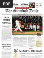 two. White, who played on the U.S. Junior National Team this past summer, did not give up a single walk or an earned run. The only run that the Utes scored came from a Cardinal defensive error in the bottom of the first inning. The win improved Whites season record to 7-6 and set up the rubber match. In the decisive game three, the Stanford offense once again showed up in full force, and Utahs Nielson could not limit the scoring the second time around. Hansen continued her hot streak by hitting a home run and a double along with scoring three runs and driving in another pair. Matching Hansen, both White and junior second baseman Jenna Rich accounted for three RBI in the game. The Utes didnt go down without putting up a tough fight, however. Utah put the pressure on Stanford right away by scoring in the first inning. On the mound, Gerhart pitched 4.2 innings in which she gave up six runs, but only one was earned. Nyree White came in to relieve Gerhart in the fifth despite pitching six full innings the day before, but Gerhart showed her toughness once again by reentering the game in the sixth to pick up her second save of the season. With the regular season officially wrapped up, Stanford has set its eyes on the postseason after receiving an at-large bid to the NCAA tournament two days ago. Postseason play is nothing new for the Cardinal, which is making its 15th consecutive appearance in the national tournament. The Cardinal will square off against Baylor (33-20) in Lafayette, La., in the opening round of the tournament on Friday. Contact George Chen at gchen15@stanford. edu.