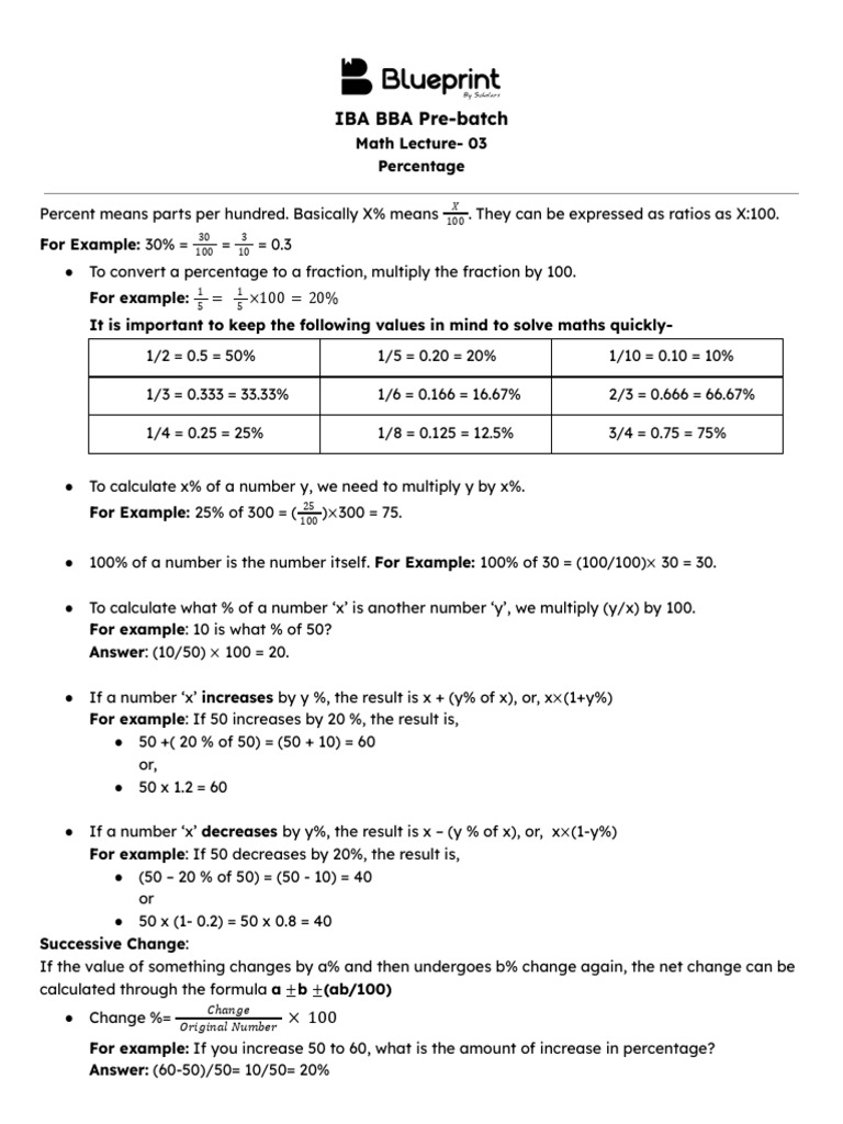 For example: If 50 decreases by 20%, the result is,