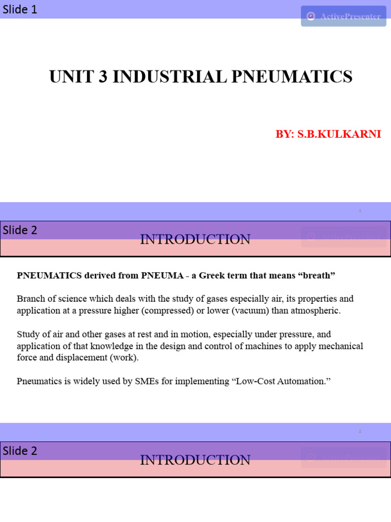UNIT 3 INDUSTRIAL PNEUMATICS