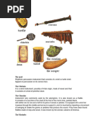 groups, "instruments which rattle and tinkle", and instruments which were beaten,