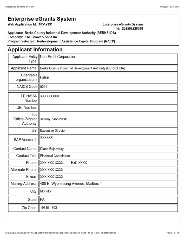 Web Application Id: 10512191 Enterprise eGrants System