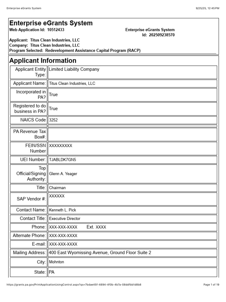 Web Application Id: 10512433 Enterprise eGrants System