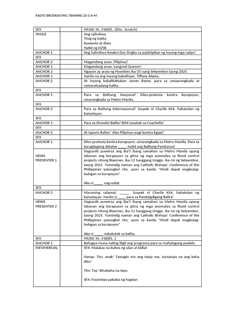 ANCHOR 2 Ngayon ay araw ng Huwebes ika-25 nang Setyembre taong 2025.