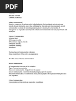 o Restrictive environment-Communication should flow easily and freely, otherwise it becomes fragmented. o Distractions- Physical ones include visual and acoustic ( mikes and ppts). o Emotional ones include hostility, worry, stress and fear. o Information overload- too much info given. One must be able to select what is important and what isnt. o Deceptive tactics- Hidden meanings, conditions apply, inflated benefits, leaving out crucial information, inaccurate geographical representation. Strategies to overcome communication barriers 1. Adopt a more audience centric approach 2. Foster an open communication climate by: a. Modifying the number of organizational level b. Choosing the right medium (i) face to face is the richest. There is immediate transfer of information (ii) verbal or non-verbal