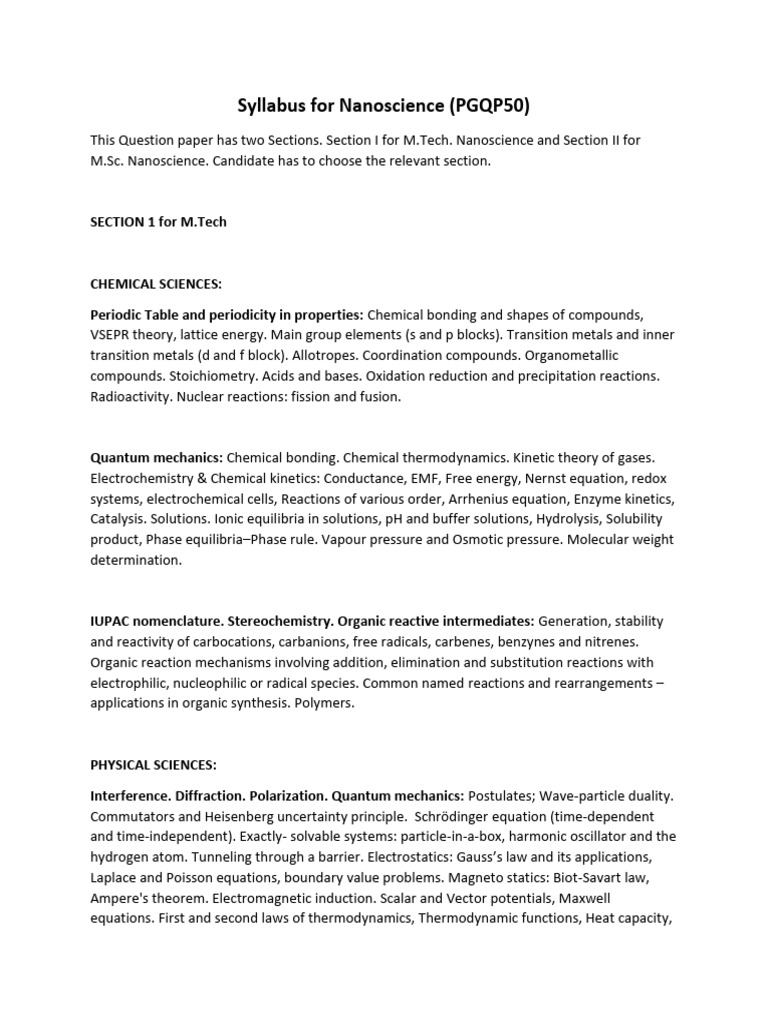 Syllabus for Nanoscience (PGQP50)