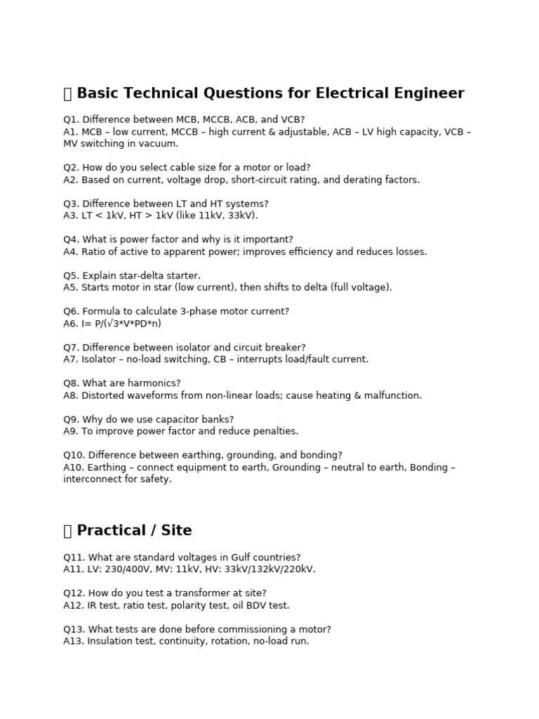 🔹 Basic Technical Questions for Electrical Engineer