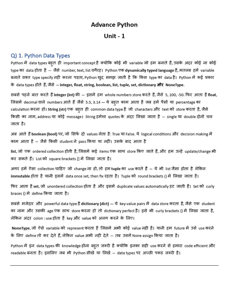 readable बनता है। इसललए जब भी Python सीखें या ललखें — data types पर अच्छी पिड़ ज़रूरी है।