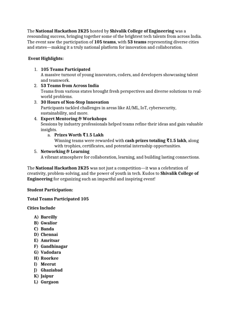 The National Hackathon 2K25 hosted by Shivalik College of Engineering was a