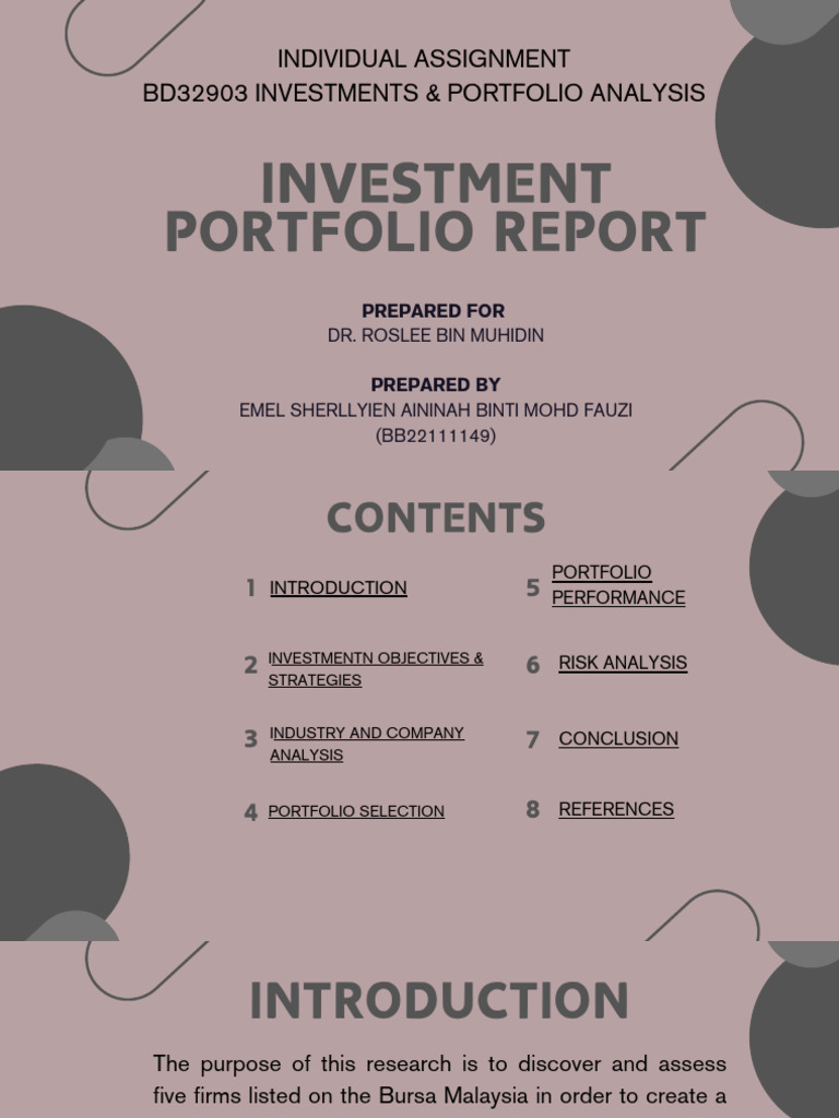 BD32903 INVESTMENTS & PORTFOLIO ANALYSIS