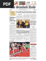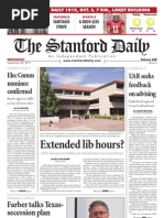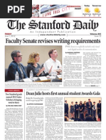 tom of the inning finally seemed to spark the Cardinal offense. Freshman designated hitter Dominic Jose hit a fly ball to centerfield, where San Francisco centerfielder Justin Maffei laid out in an attempt to make the catch. It was difficult to tell whether the ball hit the ground, but the umpire ruled that Jose was not out, and he ended up with a triple. Sophomore Brett Michael Doran came in as a pinch hitter and drove Jose home, cutting the Dons lead to one run. Schmidt relieved McArdle in the seventh inning, and despite a fluke single by Maffei and an error by Blandino, he left the inning unscathed. The bottom half of the seventh was uneventful for the Stanford offense as reliever Haden Hinkle retired the side in order. After a great eighth by Schmidt, the Stanford bats finally exploded. To lead off the inning, Blandino was hit by a pitch. Junior Elliott Waterman then came in to relieve Hinkle and quickly gave up a walk to Jose. Next up was junior Eric Smith, who had come into the game at catcher the inning before. Smith hit a booming double to right field that drove in Blandino. Coming off the bench is always tough, Smith said. I just wanted to look for a pitch early in the count that I could hit, and luckily it stayed fair. After an intentional walk to Stewart to load the bases, Gaffney drew a walk to put Stanford up 43. Piscotty then hit a sacrifice fly, followed by a double by Ragira, and the Cardinal had a comfortable three-run lead. In the top of the ninth, sophomore closer A.J. Vanegas struck out three batters to secure the win. This weekend Stanford will travel to Salt Lake City to take on Utah in a three-game series, starting Friday at 5 p.m. PDT. Contact Palani Eswaran at palani14 @stanford.edu.
