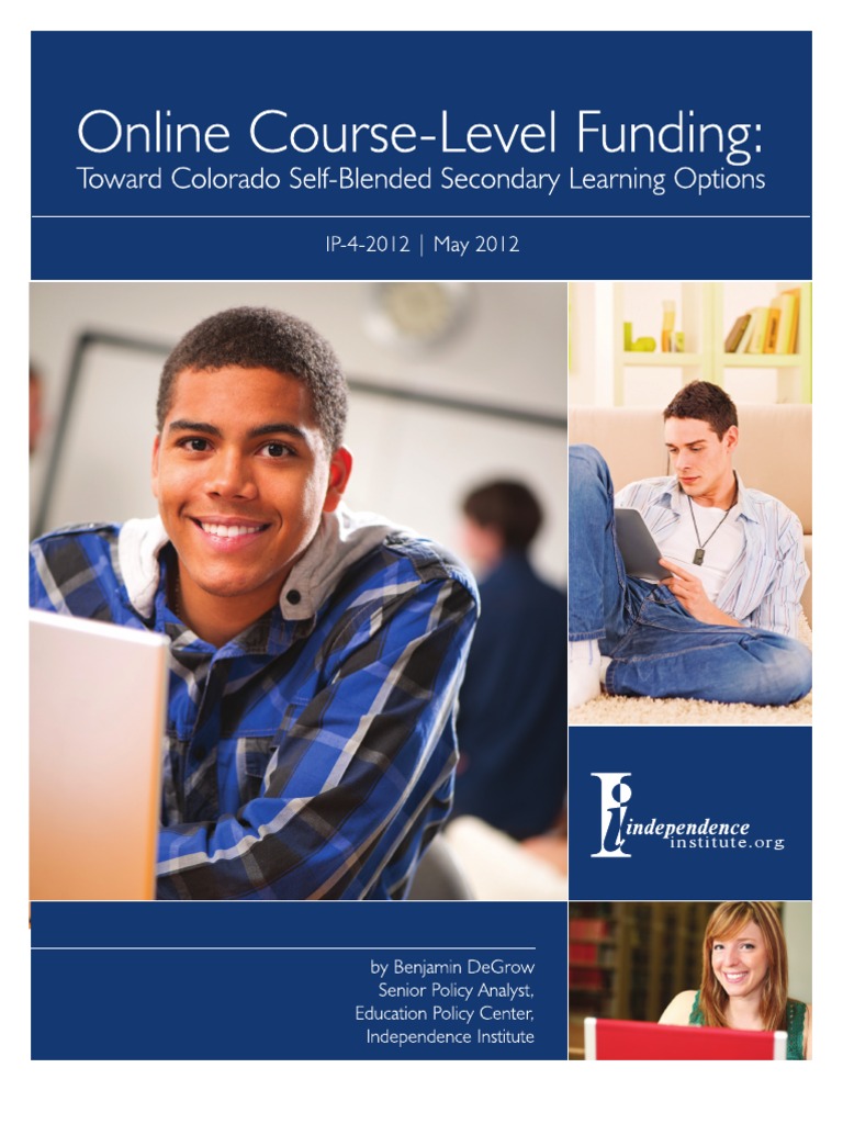 7197 Digital Learning, Bill Summary, http://www.flsenate.gov/Committees/BillSummaries/2011/html/7197ED, accessed January 31, 2012. 24 The Minnesota Department of Education (MDE) defines supplemental online learning as an online course taken in place of a course period during the regular school day at a local district. 25 Minnesota Statutes, 124D.095, https://www.revisor.mn.gov/statutes/?id=124D.095; MDE, http://education.state.mn.us/MDE/StuSuc/EnrollChoice/Online/, accessed January 31, 2012. 26 Robyn Bagley, Parents for Choice in Education, board chair, Independence Institute presentation at the Colorado Department of Education, July 13, 2011, http://education.i2i.org/2011/07/utah-education-reform-leader-shares-insightson-cutting-edge-digital-learning-law/. 27 Ibid.; Utah Code, 53A-15-1201 et seq., Statewide Online Education Program Act, http://le.utah.gov/~code/TITLE53A/htm/53A15_120100.htm; Bagley, telephone conversation with the author, January 26, 2012. 28 http://le.utah.gov/~2012/bills/sbillenr/SB0178.pdf; http://le.utah.gov/~2012/bills/sbillint/sb0178.htm; Bagley, telephone conversation with the author, January 26, 2012. 29 Idaho Statutes 33-1002A, http://www.legislature.idaho.gov/idstat/Title33/T33CH10SECT33-1002A.htm; Briana LeClaire, Chucking the Chalk: How Digital Learning is Improving Education in Idaho, Idaho Freedom Foundation report (January 2012), pgs 27-28, http://idahofreedom.net/wp-content/uploads/2012/01/Digital-Learning-Report-2012.pdf. 30 http://education.i2i.org/wp-content/uploads/2012/02/FTE-CSAP-Comparison-Revised.pdf. 31 Colorado Department of Education, Public School Finance Unit, Average Daily Membership Study, http://www.cde.state.co.us/cdefinance/AverageDailyMembershipStudy.htm. 32 Colorado State Board of Education, Amended Rules for the Administration of the Public School Finance Act of 1994, 1 Colorado Code of Regulations 301-39, 2254-R-5.00 Determination of Membership and of Pupil Enrollment, http://www.cde.state.co.us/cdeboard/download/bdregs_301-39.pdf. 33 CDE, Understanding School Finance, pgs 4-5. 34 State of Colorado Joint Budget Committee, Appropriations Report FY 2011-12, pgs 78-79, http://www.state.co.us/gov_dir/leg_dir/jbc/FY11-12apprept.pdf. 35 Colorado Department of Education, School Finance Act Fiscal Year 2010-11 District Payment Information, http://www.cde.state.co.us/scripts/fin_distpaym_submit11.asp. 36 Paul T. Hill, School Finance in the Digital-Learning Era, Thomas B. Fordham Institute Working Paper (November 2011), pg 6, http://www.edexcellencemedia.net/publications/2011/2011_CreatingSoundPolicyforDigitalLearning/20111116_SchoolFin anceintheDigitalLearningEra_Hill.pdf. 37 Owens v. Colorado Congress of Parents, 92 P.3d 933 (Colo. 2004). Based on Article IX, 15 of the state constitution, the Colorado Supreme Court has consistently ruled that local school districts must retain control over any instruction paid for with locally-raised funds. See also Belier v. Wilson, 59 Colo. 96, 147 P. 355 (1915) and Lujan v. Colorado State Board of Education, 649 P.2d 1005 (Colo.1982). 38 CDE data. The five districts are Estes Park R-3, West Grand 1-JT, Meeker RE-1, De Beque 49JT, Clear Creek RE-1, and Pawnee RE-12. An additional $1.594 million would be needed to ensure these districts also could make available four semester digital course opportunities ($1,700) to each of its secondary students. 39Lisa Snell, Weighted Student Funding Yearbook, Reason Foundation (2009), pgs 52-53, 117-118, http://reason.org/files/wsf/yearbook.pdf; Denver Public Schools, "Student-Based Budgeting Overview & 2011-12 Budget Recommendations," presentation to Board of Education, January 18, 2011, http://businessmanuals.dpsk12.org/11-12/201112%20Budget%20Recommendation%20for%20BoE%20-%201-18-11.pdf. 40 Hill, School Finance in the Digital Learning Era, pgs 6-7. 41 Colorado Constitution Article IX, 2. 42 Hill, School Finance in the Digital Learning Era, pgs 8-10. 43 Anderson and Skrzypchak, Blended Learning: The Best of Both Worlds, pgs 18-20. 44 Hess, Quality Control in Digital Learning: Three (Imperfect) Approaches, http://www.edexcellencemedia.net/publications/2011/2011_CreatingSoundPolicyforDigitalLearning/20110727_QualityC ontrolinK12DigitalLearning_Hess.pdf.