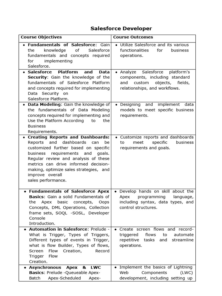 ● Fundamentals of Salesforce Apex ● Develop hands on skill about the