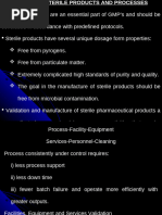 - Parenteral products: moist heat or filtration. - Ophthalmic preparations: filtration or aseptic
