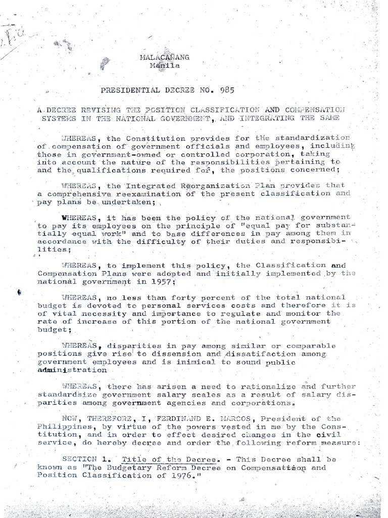 ~f.HE~EhS~ th&re has arisen a need to ra~ionalize dnd furth~r standardsize government salaJ;'yscalesas a resul.t of" salary dis,p~rities among g'ov-er.rnnent agencies 'and corpora:tiop.$"