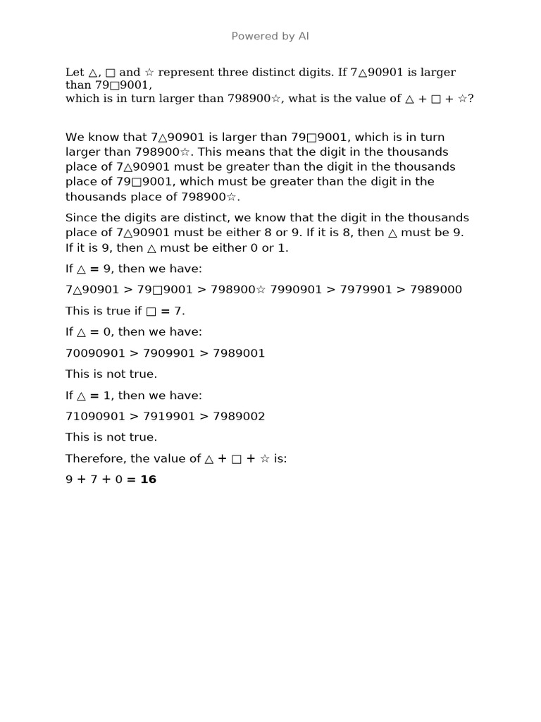 which is in turn larger than 798900☆, what is the value of △ + □ + ☆?