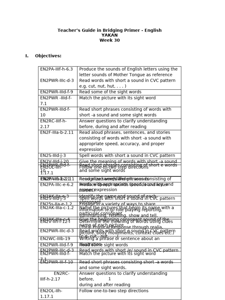 Teacher’s Guide in Bridging Primer - English