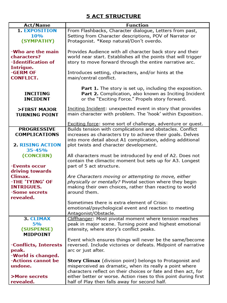 -Events occur part of 5 act structure.