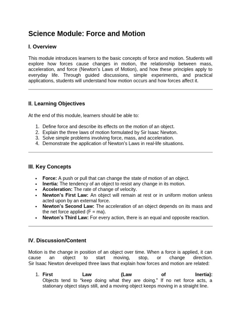 Science Module: Force and Motion